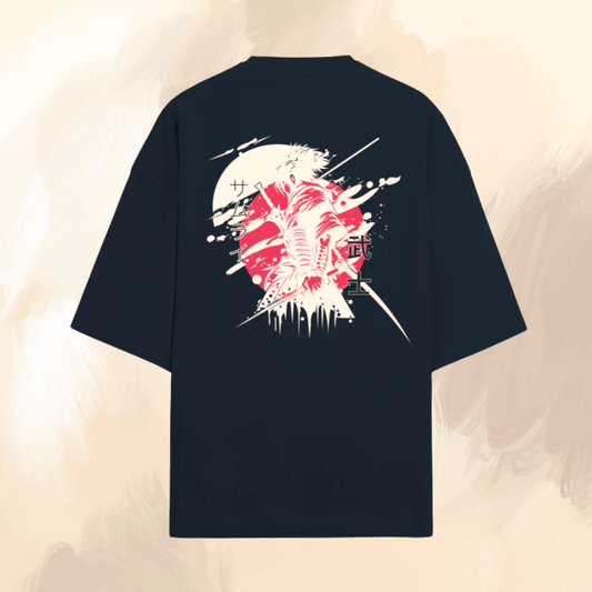 Blue Samurai Oversized T-Shirt – Anime Streetwear Dual Print Tee