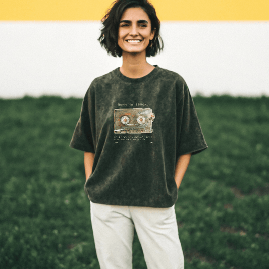 Born in the 90s – Acid Wash Oversized Cassette Tape Graphic T-Shirt