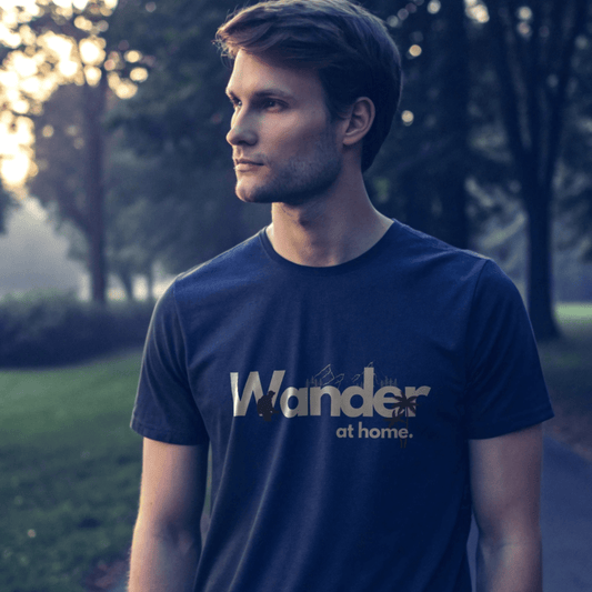 Wander Navy Cotton T-Shirt – Minimal Travel-Inspired Graphic Tee