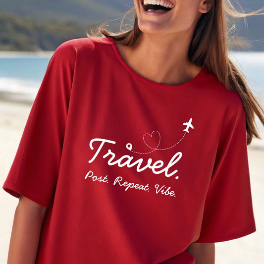 Post. Repeat. Vibe. Travel Tee – Oversized Fit for Women