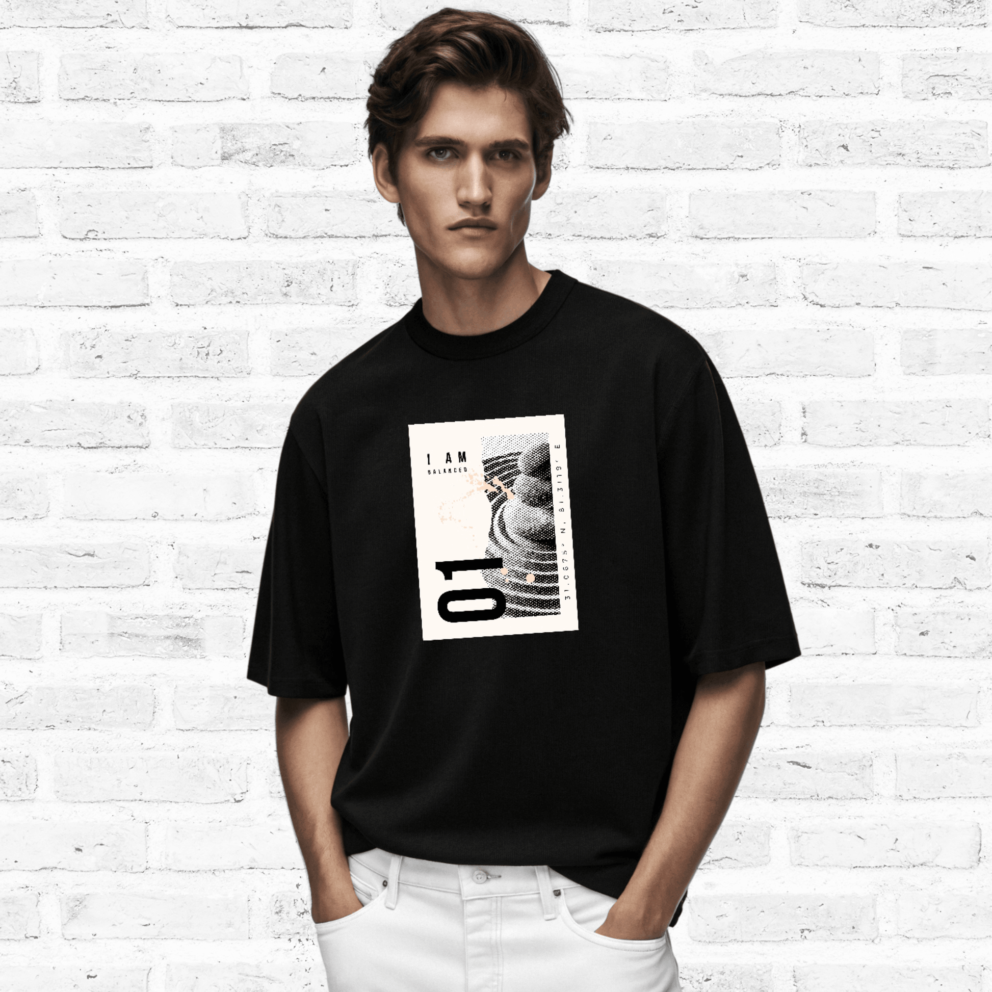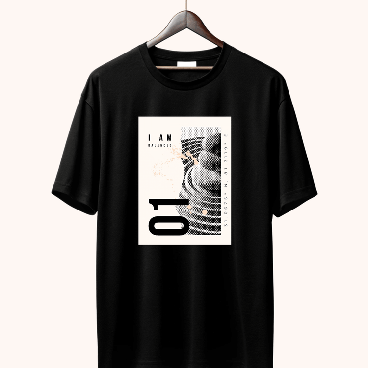 Drop into stillness with this oversized terry t-shirt, designed for those who live in the now. The "I AM BALANCED" graphic brings a futuristic calm with subtle coordinates and ripple detailing. Equal parts bold and reflective—made for mindful days and street-style nights.