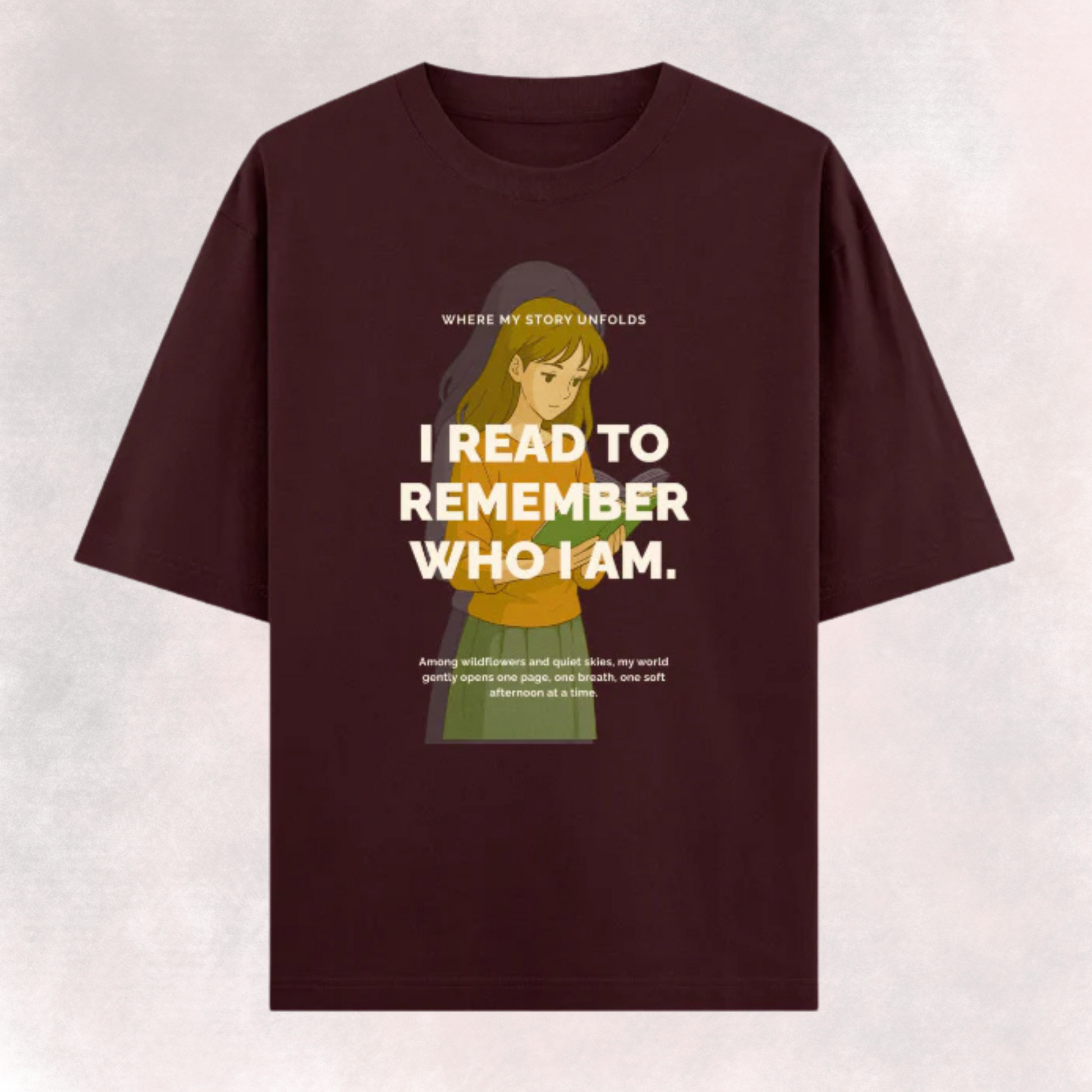 I Read to Remember Who I Am – Oversized Cotton T-Shirt for Book Lovers