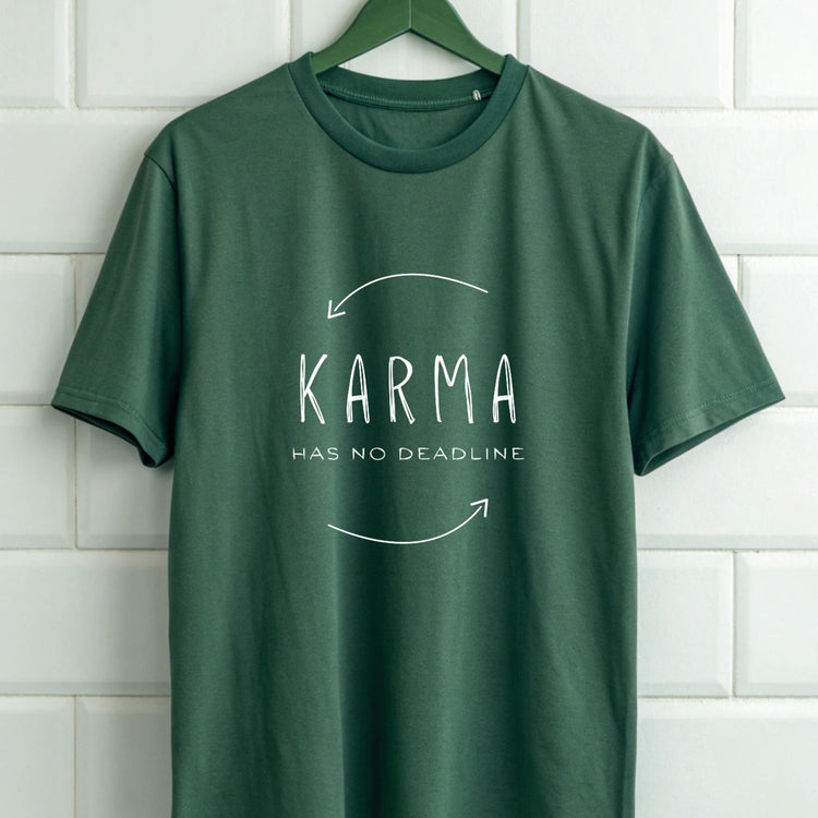 Design Pattern Minimal “Karma Has No Deadline” quote with circular arrow iconography