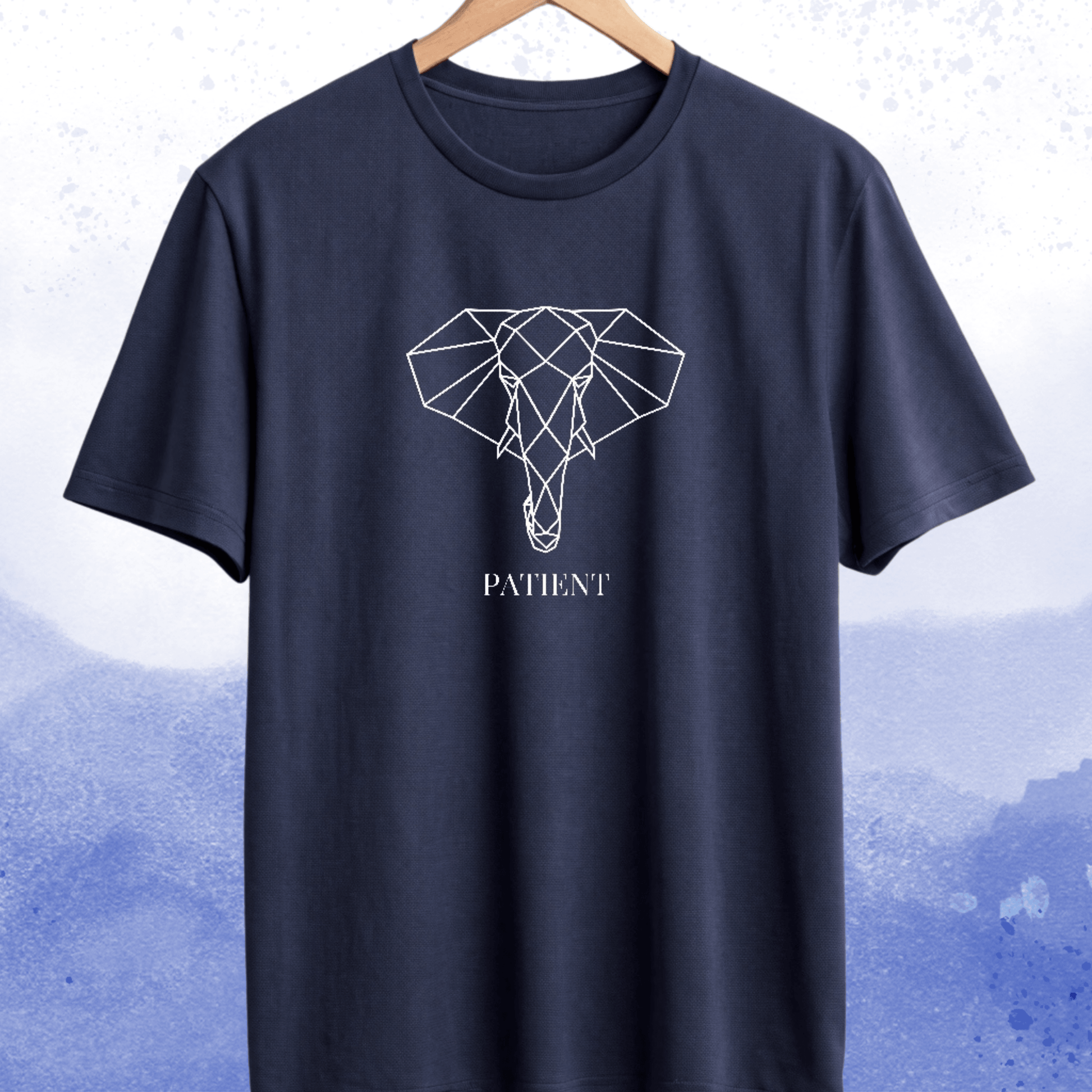 Tap into calm energy with the Patient Cotton T-Shirt, a tribute to timeless strength. Crafted in breathable 100% cotton, this unisex tee features a geometric elephant design. Ideal for steady minds who move with purpose.