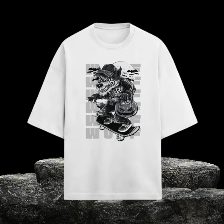 Werewolf Skate Oversized T-Shirt – White Terry Unisex Streetwear Tee