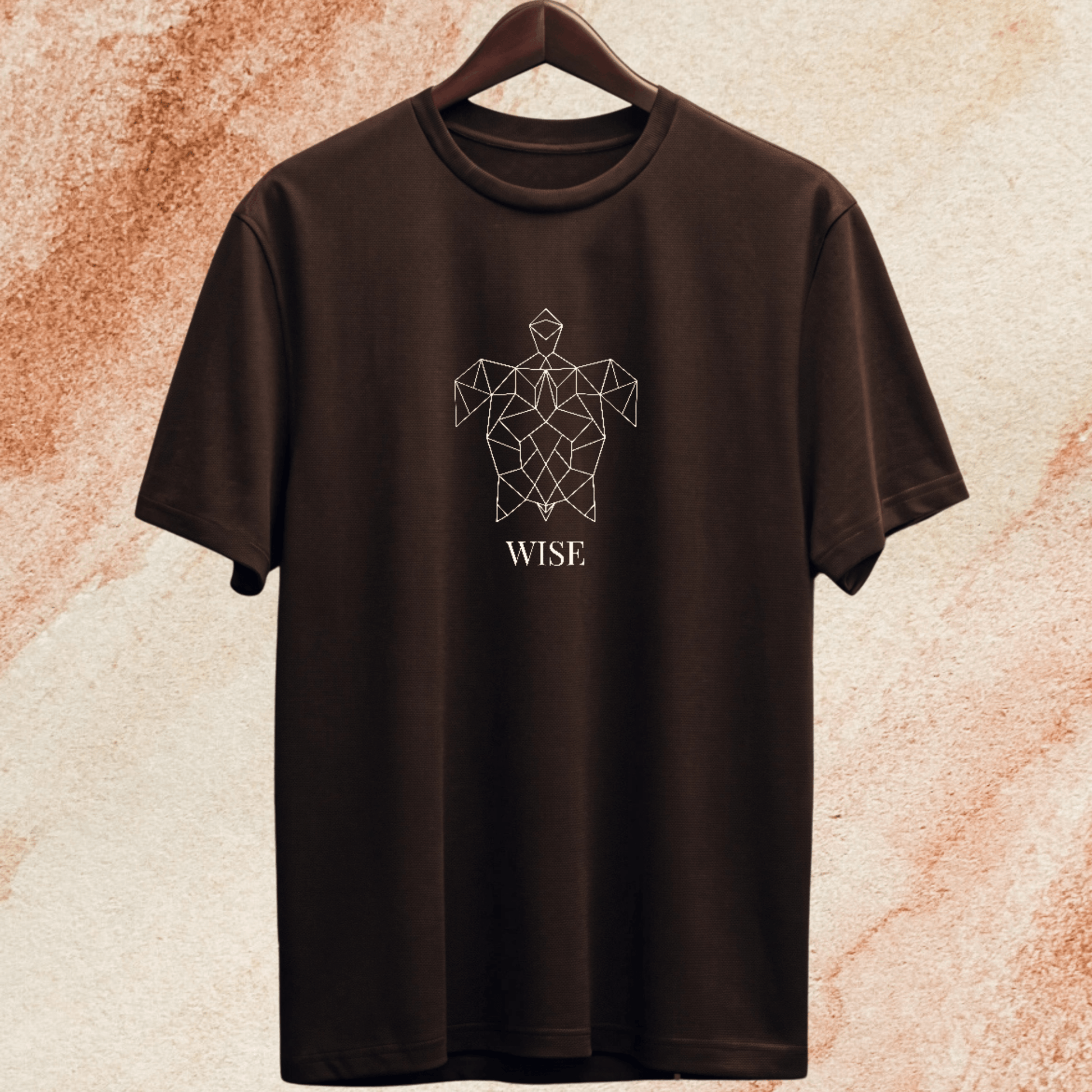 Move slow, think deep. The Wise Cotton T-Shirt pairs calm confidence with timeless style. This 100% cotton tee features a geometric turtle design for those who choose wisdom over rush. Comfy, breathable, and made to outlast trends—just like you.